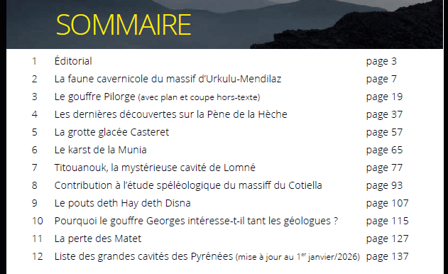 Quelque chose comme 137 pages, plusieurs cavités récemment explorées, un article sur la faune cavernicole d’un massif basque et d’autres pépites.